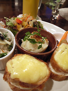 メニューはカレーとか、店名通り「どんぶり」もあったりしたのですが、この時は「クロックムッシュプレート」を選ぶ。バゲットを使ったちいさなクロックムッシュ2つに、サラダとデリがセット。このクロックムッシュが、間にはさんであるクリームが美味しかったですねぇ。クロックムッシュだと普通はホワイトソースを使うんでしょうけど、ここのはクリームチーズっぽいクリームで、より濃厚な感じというか。デリもおいしい。